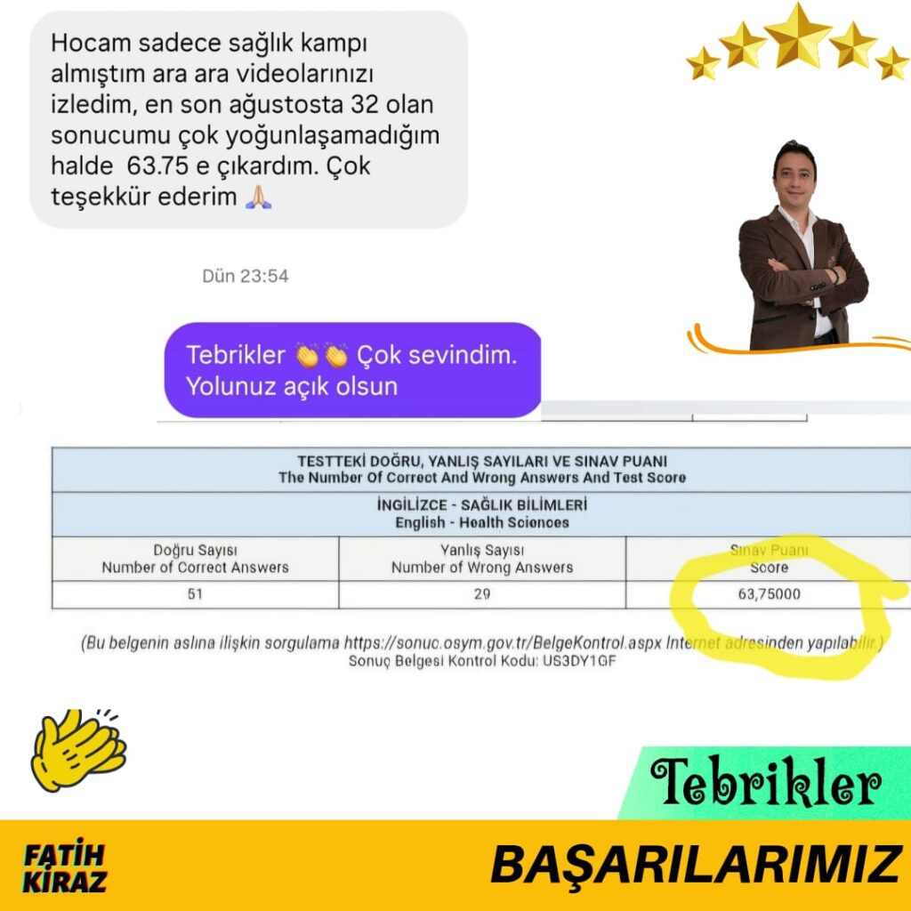 Aşağıda öğrencilerimizin kendi mesajları ve sınav sonuçları yer almaktadır: